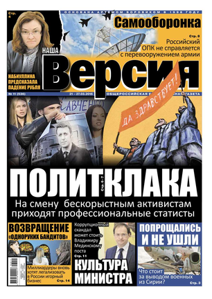 Общероссийская еженедельная газета «Наша Версия» сегодня - это один из ведущих еженедельников журналистских расследований – жесткий и информативный, остроумный и понятный.